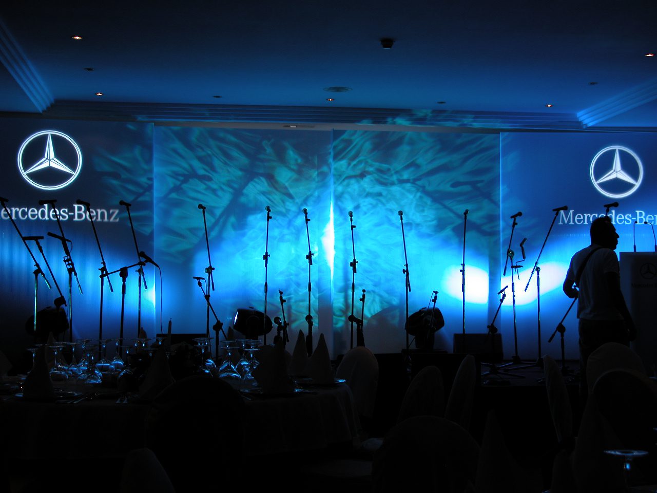 Proyectores robotizados, LED bar, proyectores de recorte, proyectores fresnel, proyectores inalámbricos autónomos (batería), gobos, cañones de seguimiento LED, láser computarizados, guirnaldas LED e incandescencia, focos decorativos para carril, controles digitales ONYX.