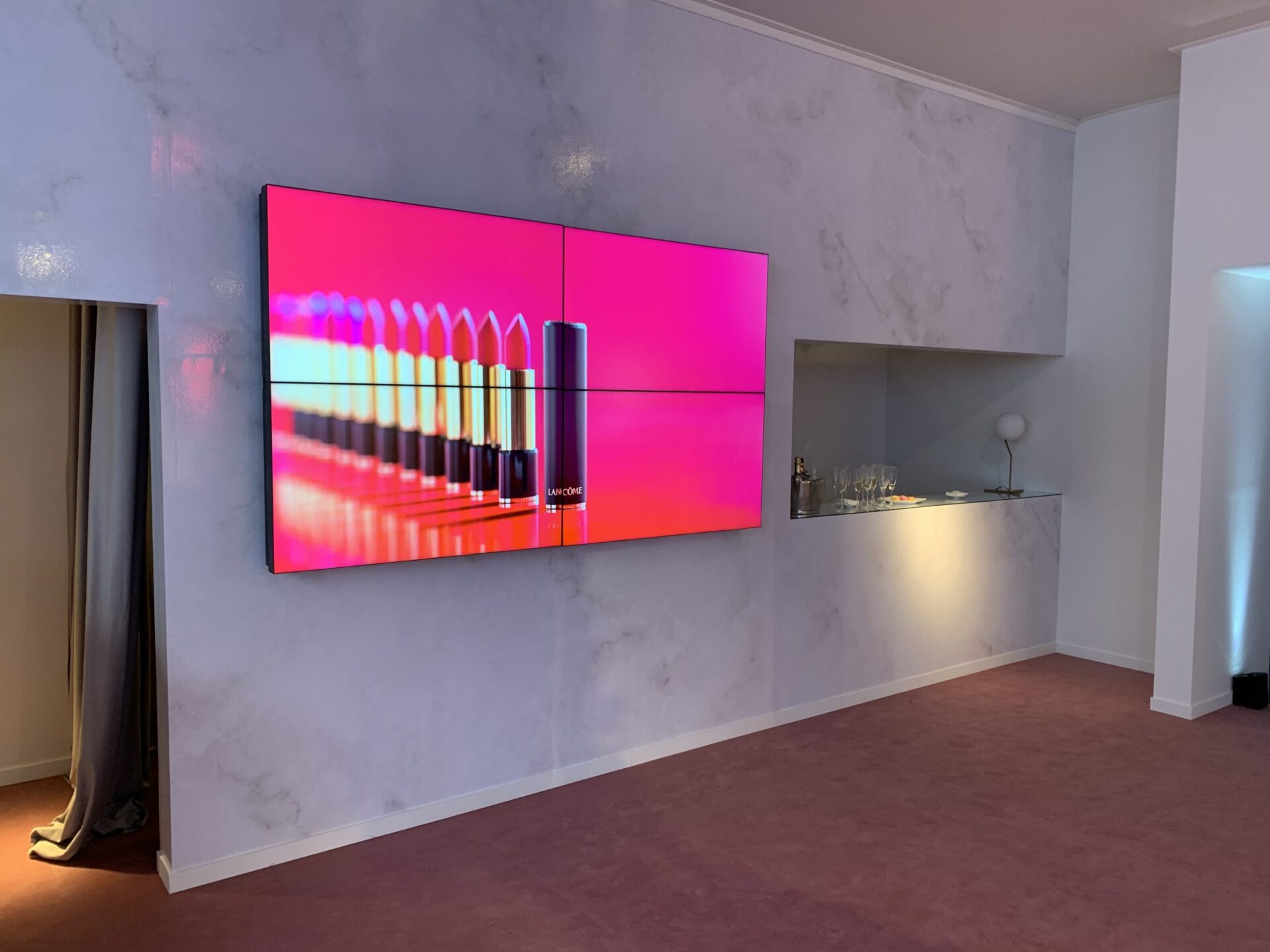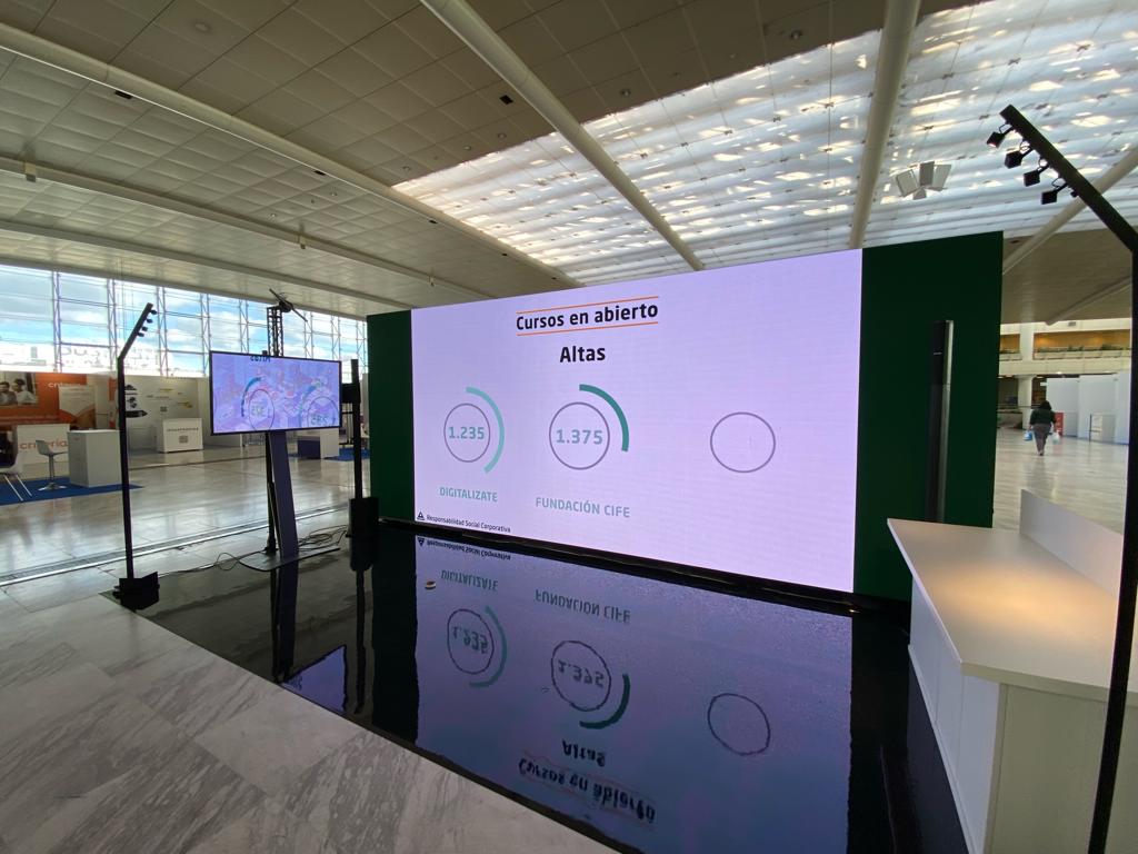 Contamos con todo tipo de superficies audiovisuales de última generación, desde una pantalla LCD (como la tele de tu casa), pero gigante (hasta 98”) hasta más de 200 m2 de pantalla LED modular de alta definición.
